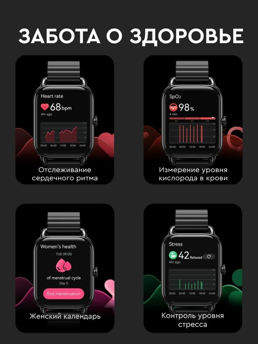 Купить Умные часы HAYLOU RS4 Plus Smartwatch Black Magnetic Strap LS11 с магнитным ремешком, 105 режимов активности и мониторинг здоровья, черный