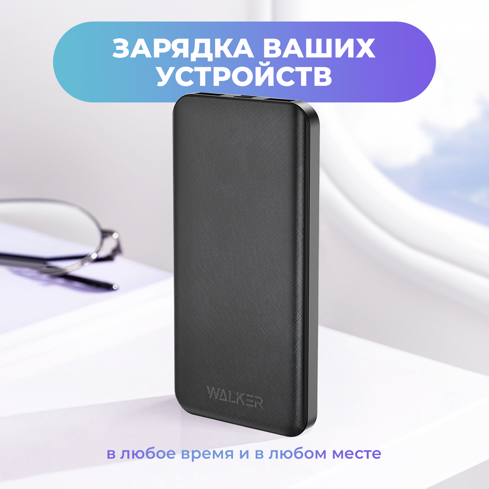 Повербанк 10000 mAh, WALKER, WB-410, 2.4 А, черный // powerbank, пауэр банк, power bank, павербанк, повербанк xiaomi, повербанк для айфона