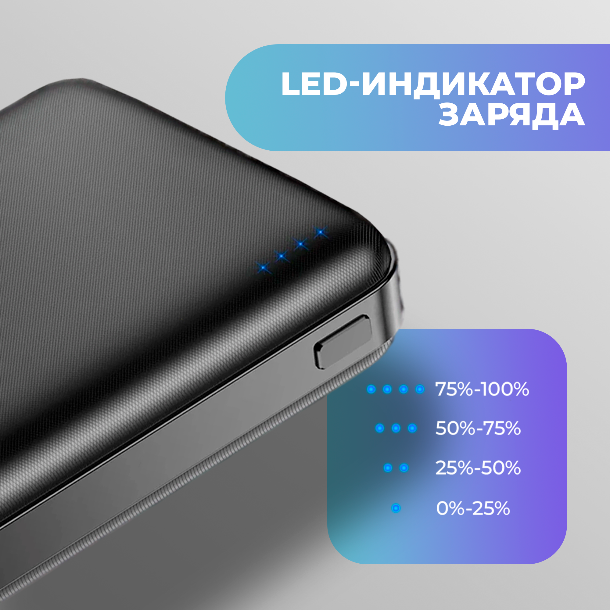 Купить Повербанк, 10000 mAh, 2.4 А, 2 USB, черный powerbank, пауэр банк, внешний аккумулятор, повербанк xiaomi, повербанк 10000