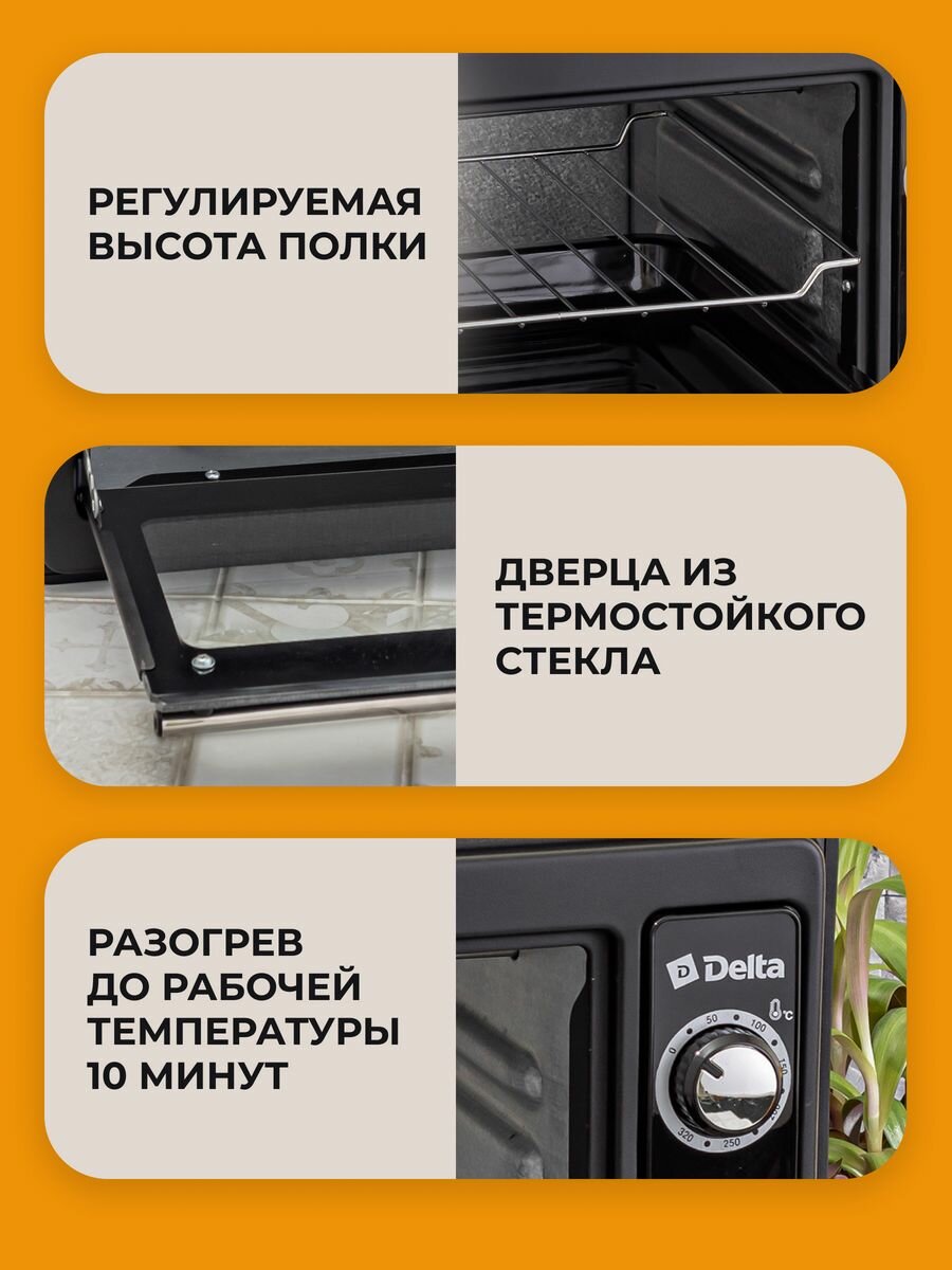 СохранитьМини-печь Delta D-0122 черная интересное: