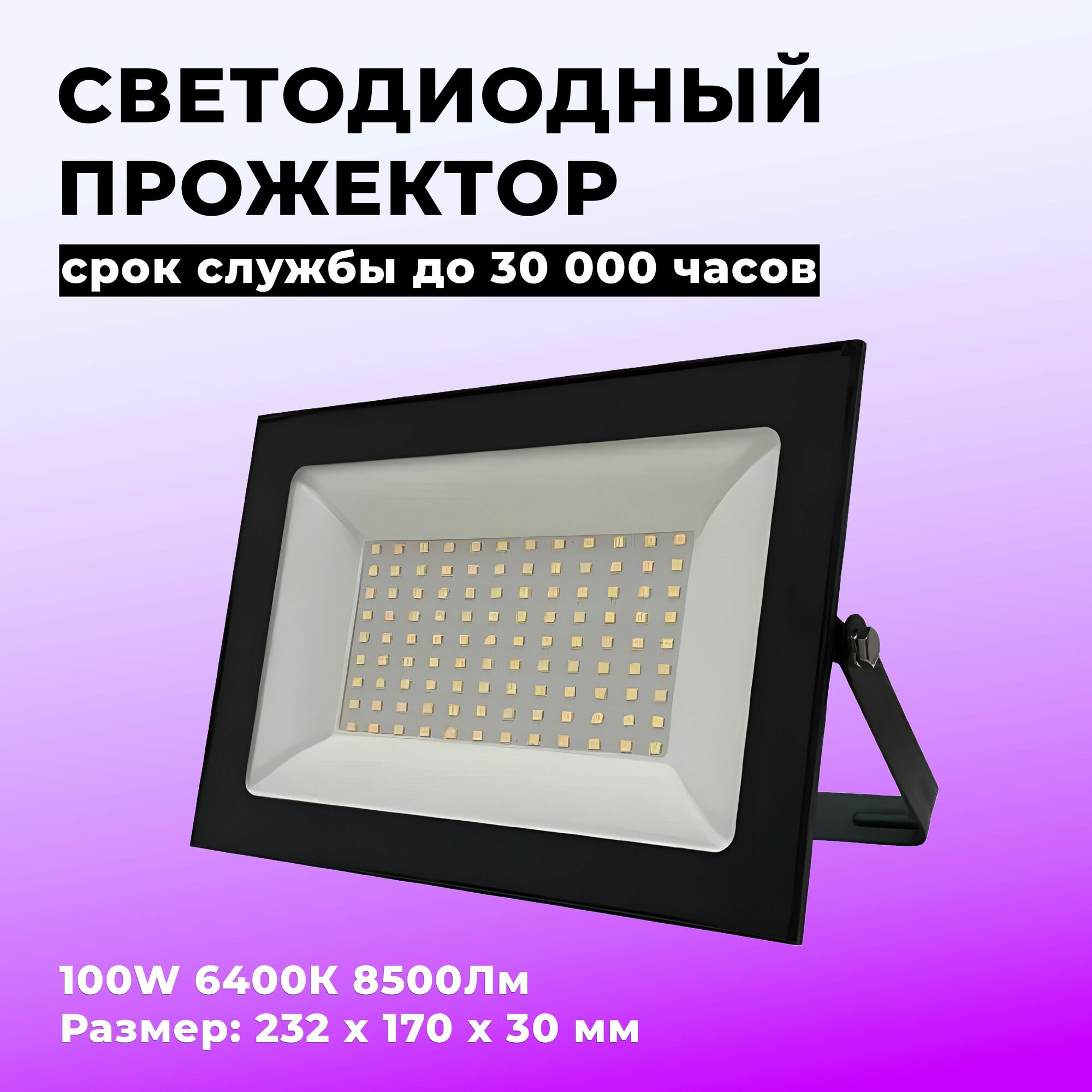 Светодиодный прожектор Foton Lighting 100Вт 220В 6400К Холодный белый 8500Лм IP65 черный 232x170x30мм 640г, упаковка 1шт