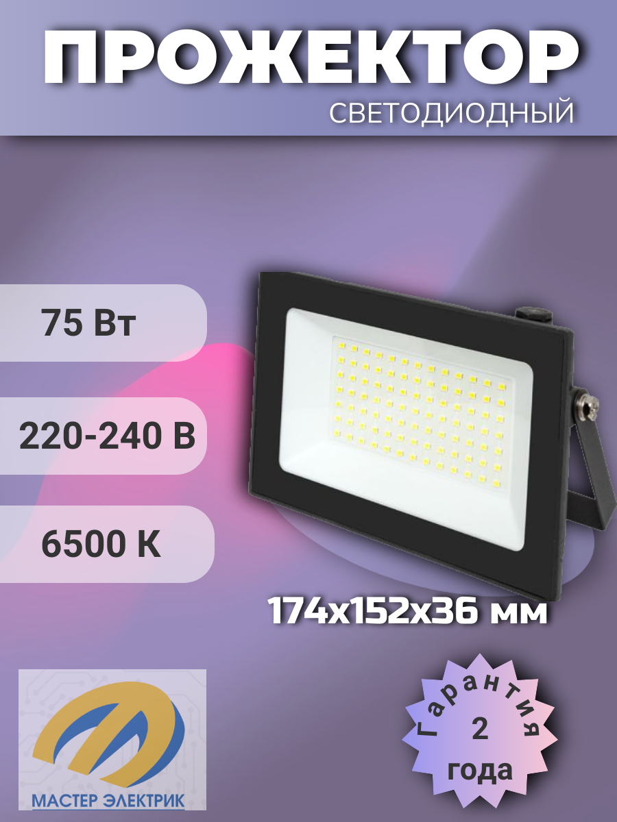 Прожектор светодиодный EKF СДО-3005 75Вт 6500К IP65 LUMA