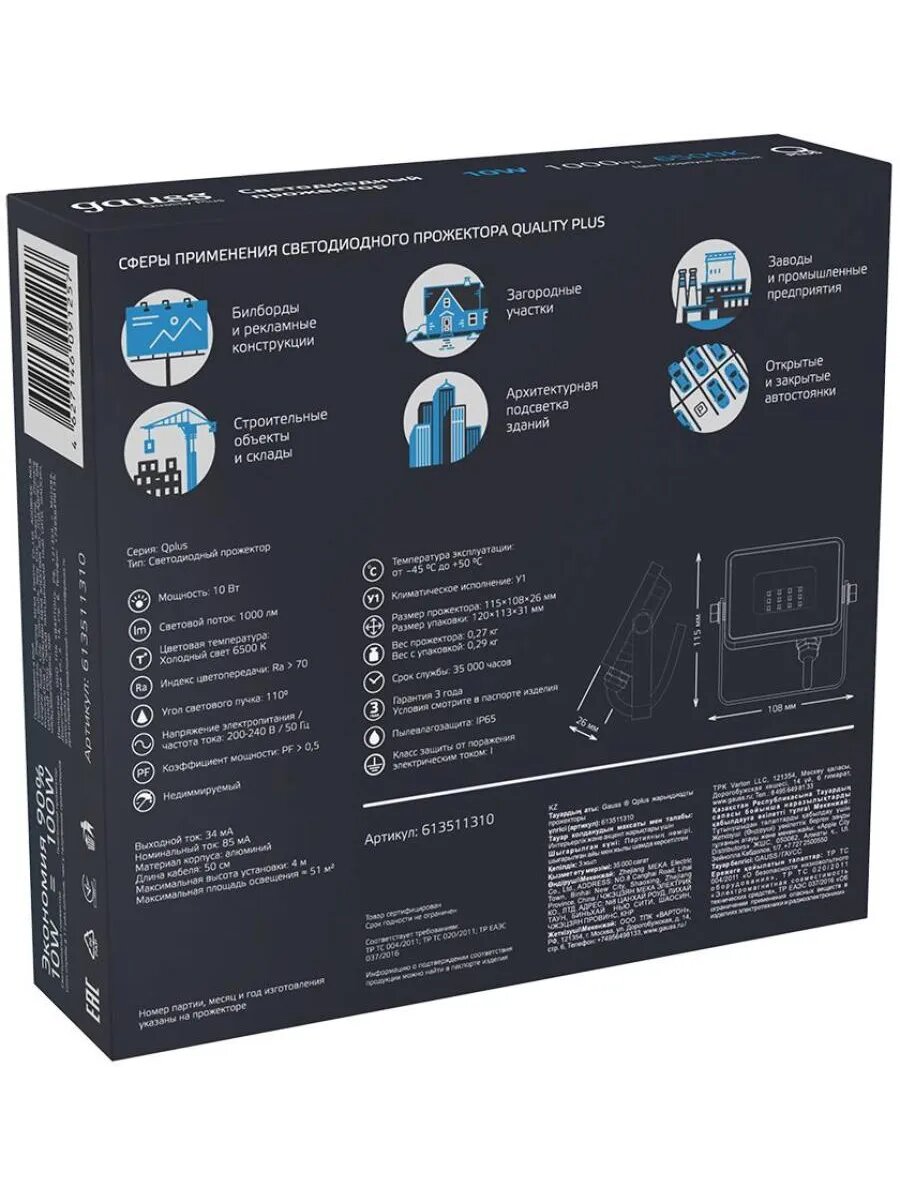 Прожектор уличный Gauss Qplus 613511310
