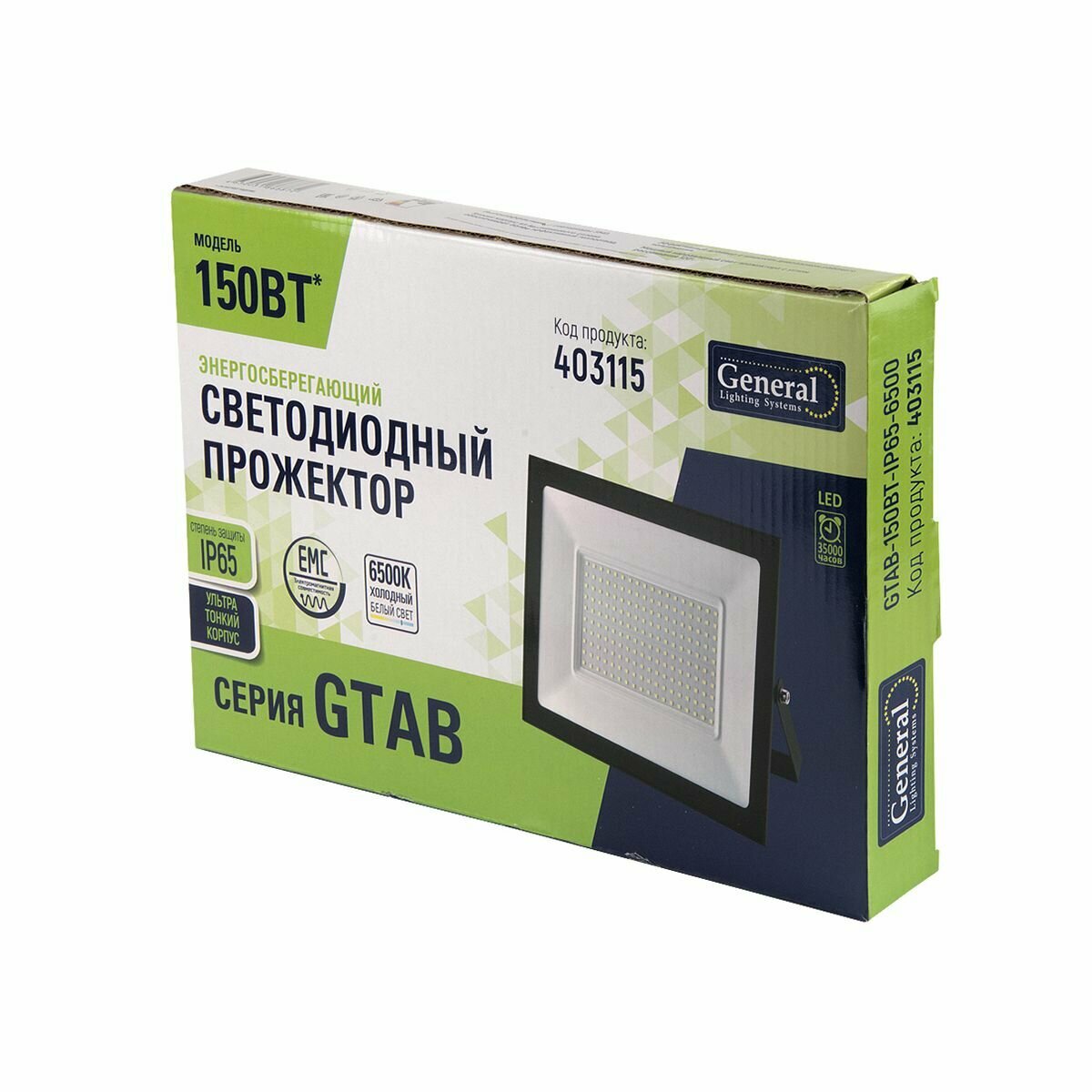 Купить GENERAL прожектор светодиодн. 150W(10550lm) 6500K 6K 316х233х35 черный 403115 (арт. 713851)