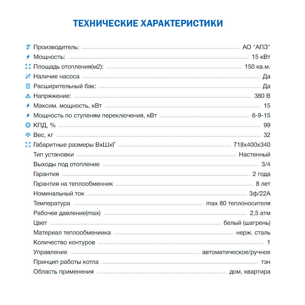 | Тепловая мощность | 6 - 15 кВт |