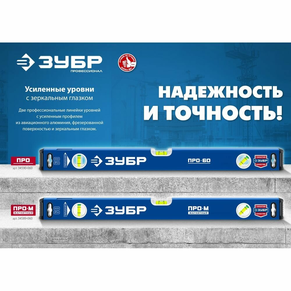 СохранитьЗУБР 600 мм, Усиленный уровень, Профессионал (34590-060) интересное: