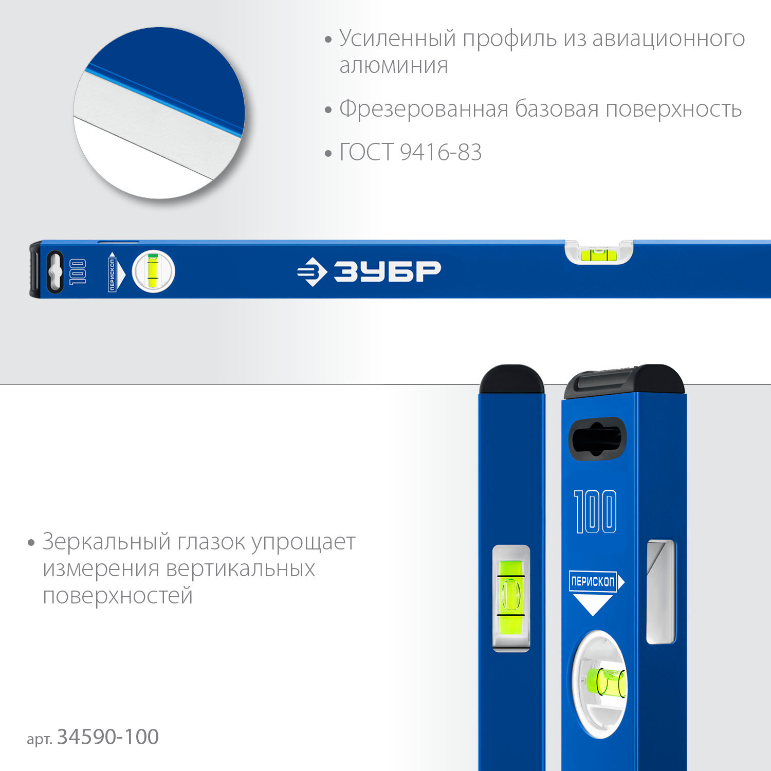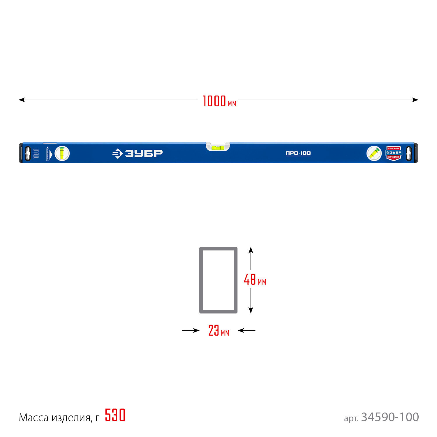 ЗУБР про, 1000 мм, уровень с усиленным профилем, Профессионал (34590-100)