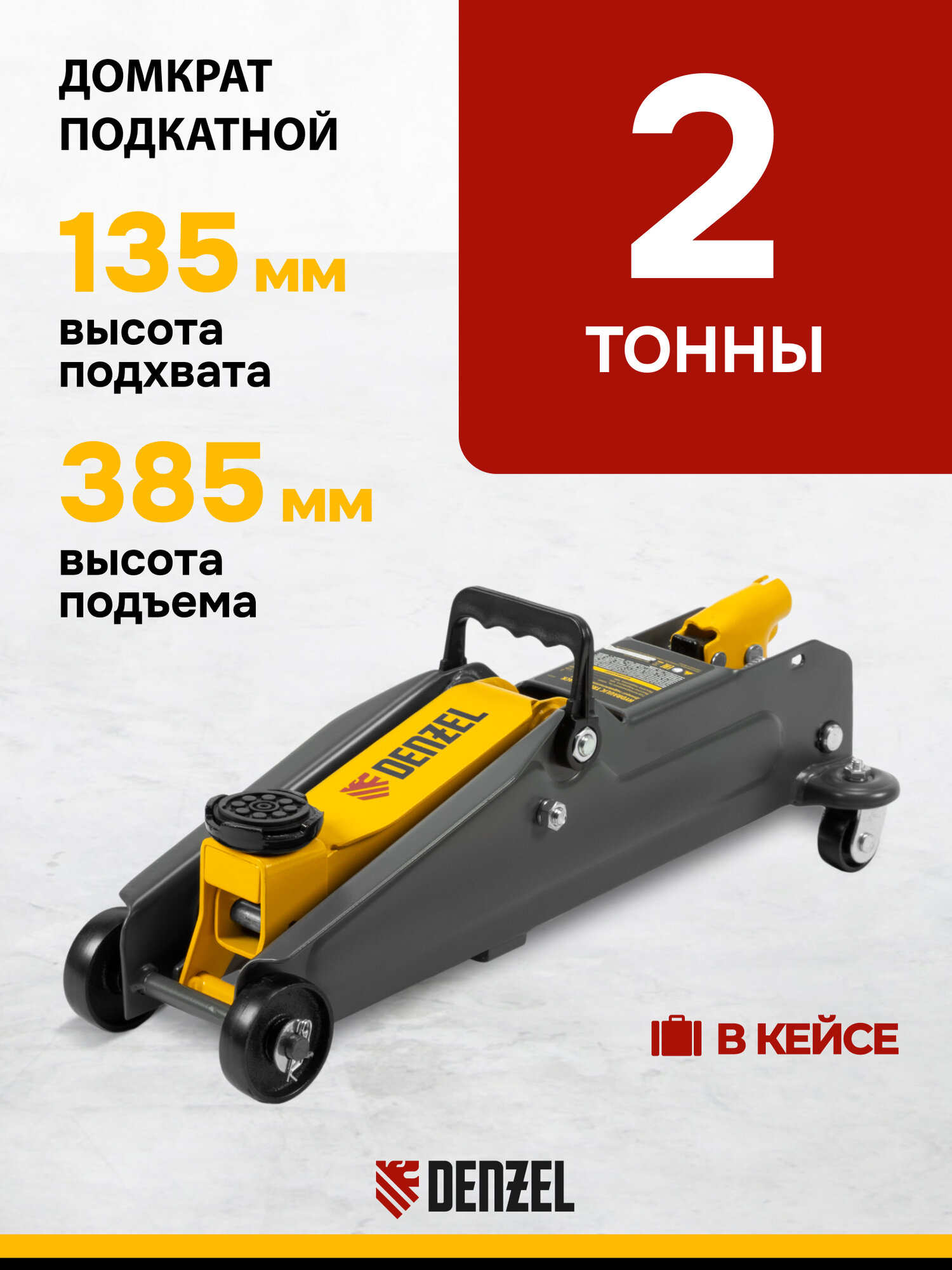 Купить Домкрат гидравлический подкатной, 2 т, 135-385 мм, в пласт. кейсе Denzel
