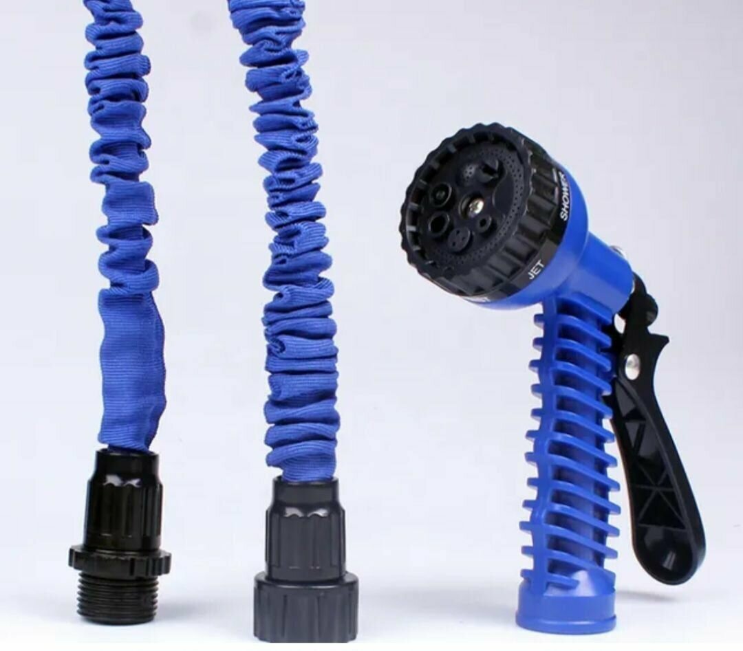 Шланг поливочный удлиняющийся с распылителем 7,5-37 метр, синий