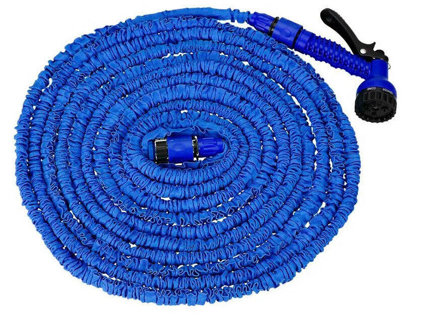 Шланг поливочный удлиняющийся с распылителем 7,5-37 метр, синий