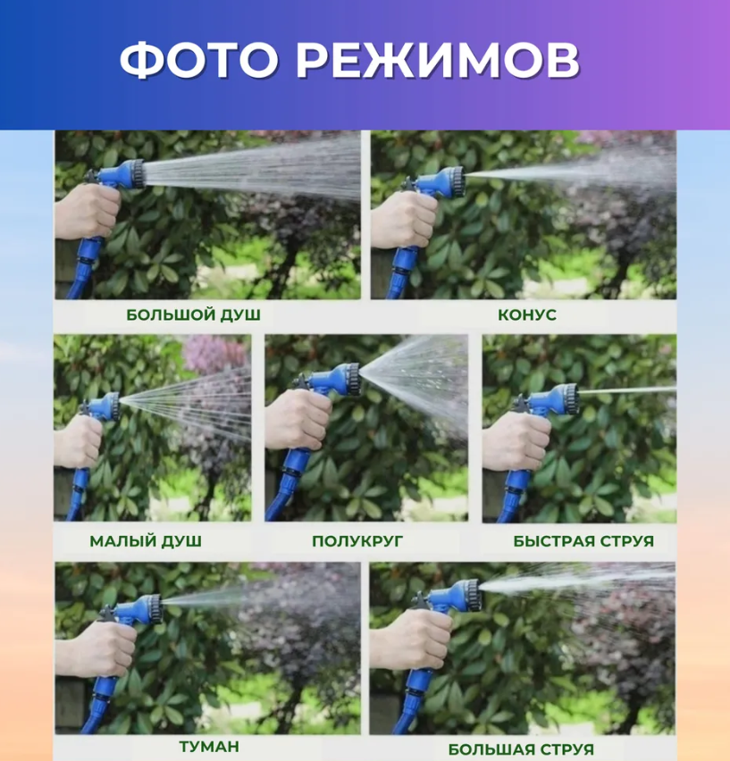 Легковесный шланг увеличивающийся (5 м - 15 м) с функцией модульного присоединения к смесителю для эффективного полива сада даже в труднодоступных участках, с распылителем, 7 режимов