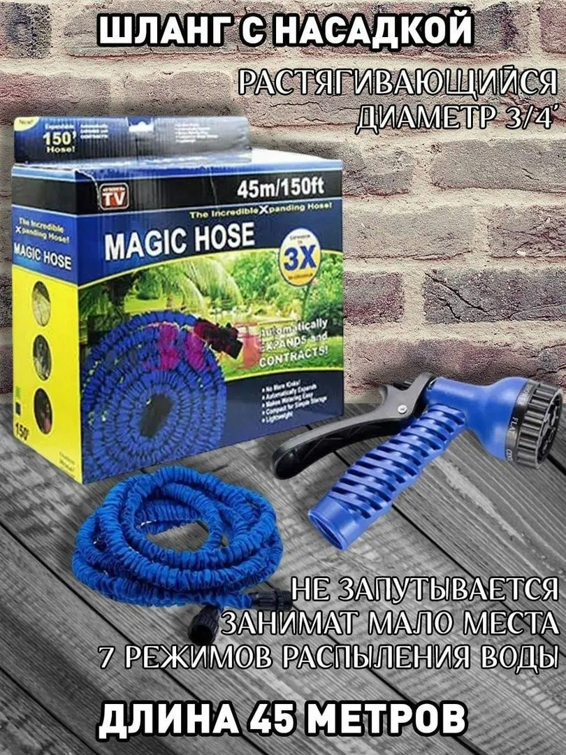 Шланг садовый Magic Hose, растягивающийся шланг для полива, шланг водяной с распылителем, 45 м