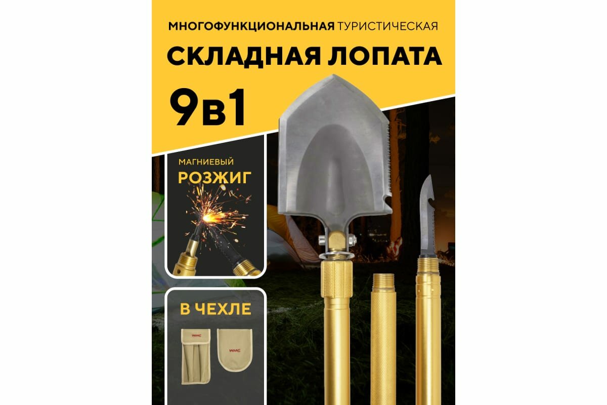 WMC-171U Лопата складная многофункциональная9в1(3ручки удлинителя,спасательный молоток,свисток,тактический нож,топор,пила,открывашка,магниевый стержень)в чехле