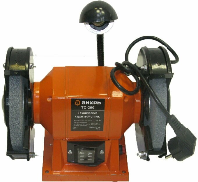 Точильный станок Вихрь 200 Вт, 2950 оборотов в минуту, круг 150х16 мм, подсветка, защитный экран интересное: