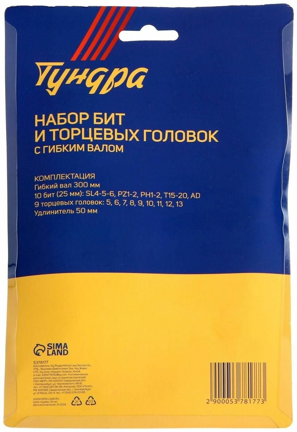 Набор бит с гибким удлинителем TUNDRA, PH-SL-PZ-TX 25 мм, с торцевыми головками, 21 предмет 537817 . интересное: