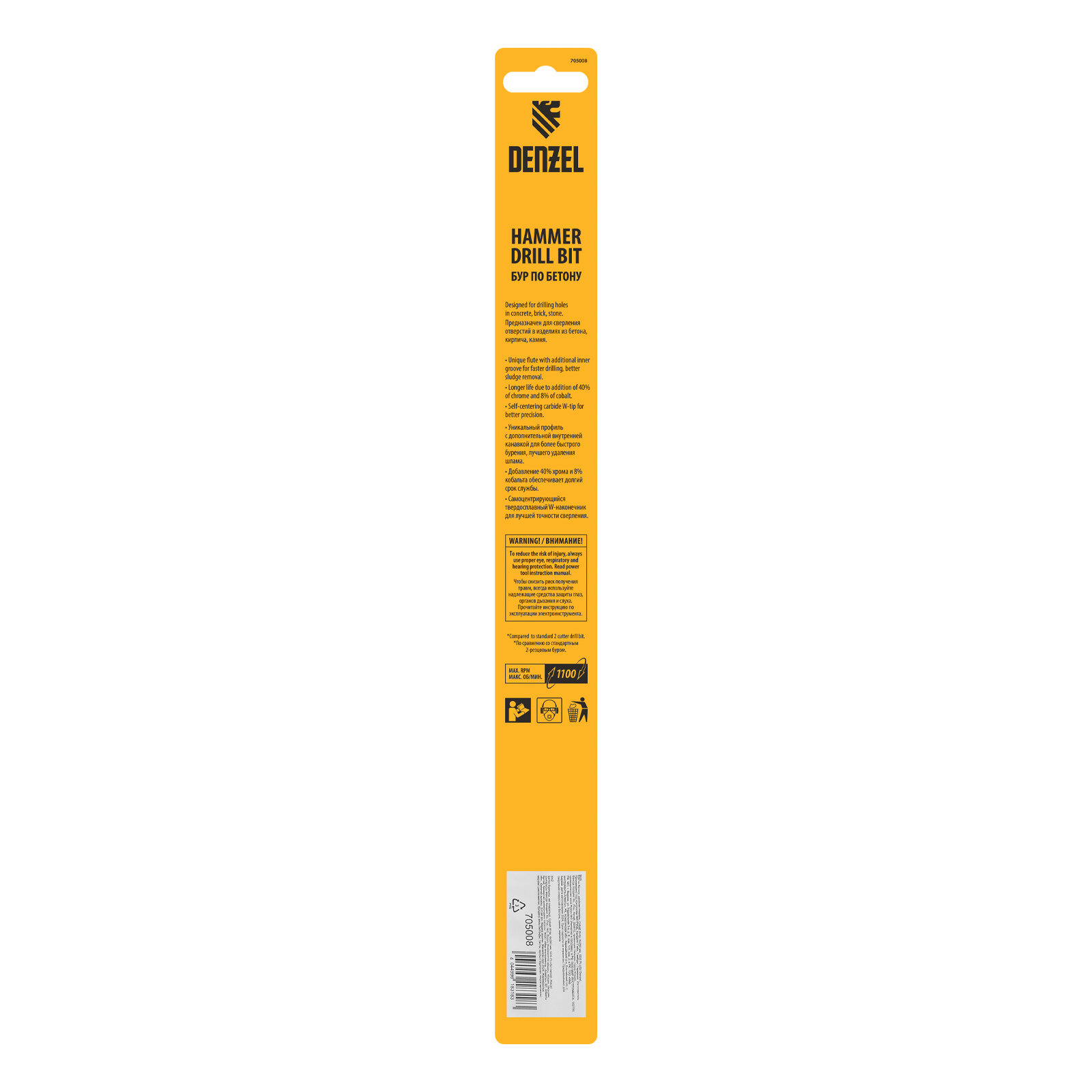 Бур по бетону Denzel двойная спираль, Cobalt W-tip, 6x260 мм, SDS PLUS 705008