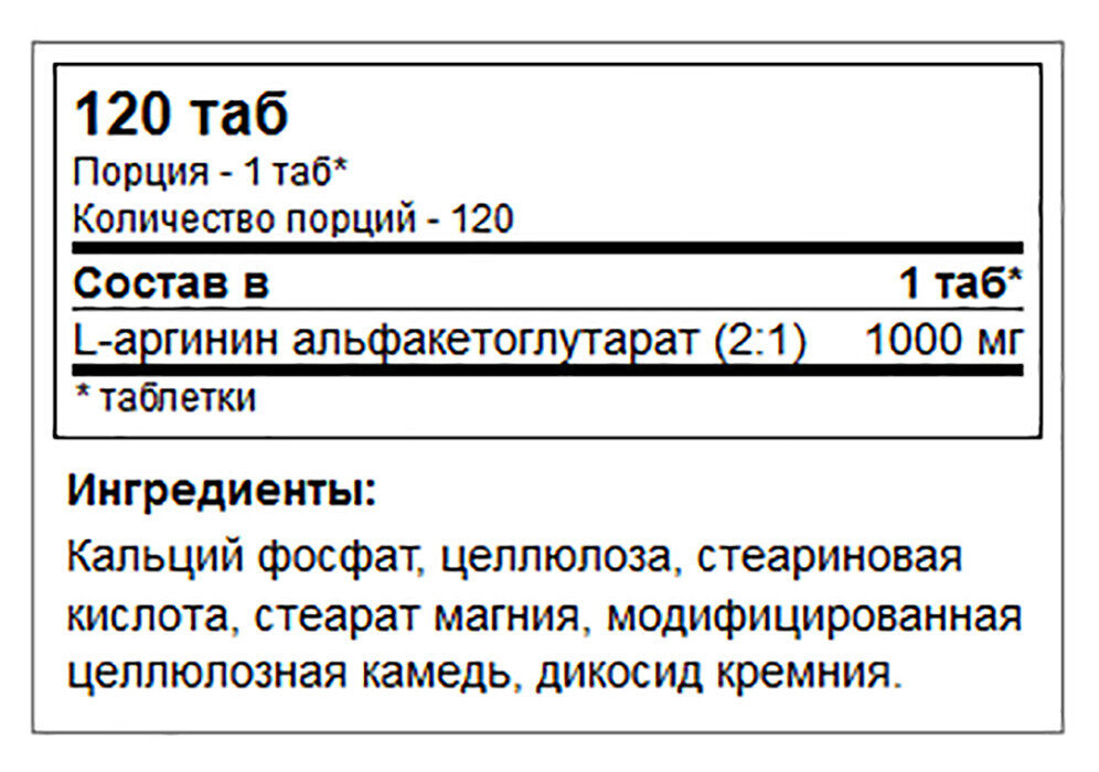 | Основной ингредиент | аргинин альфа-кетоглутарат |