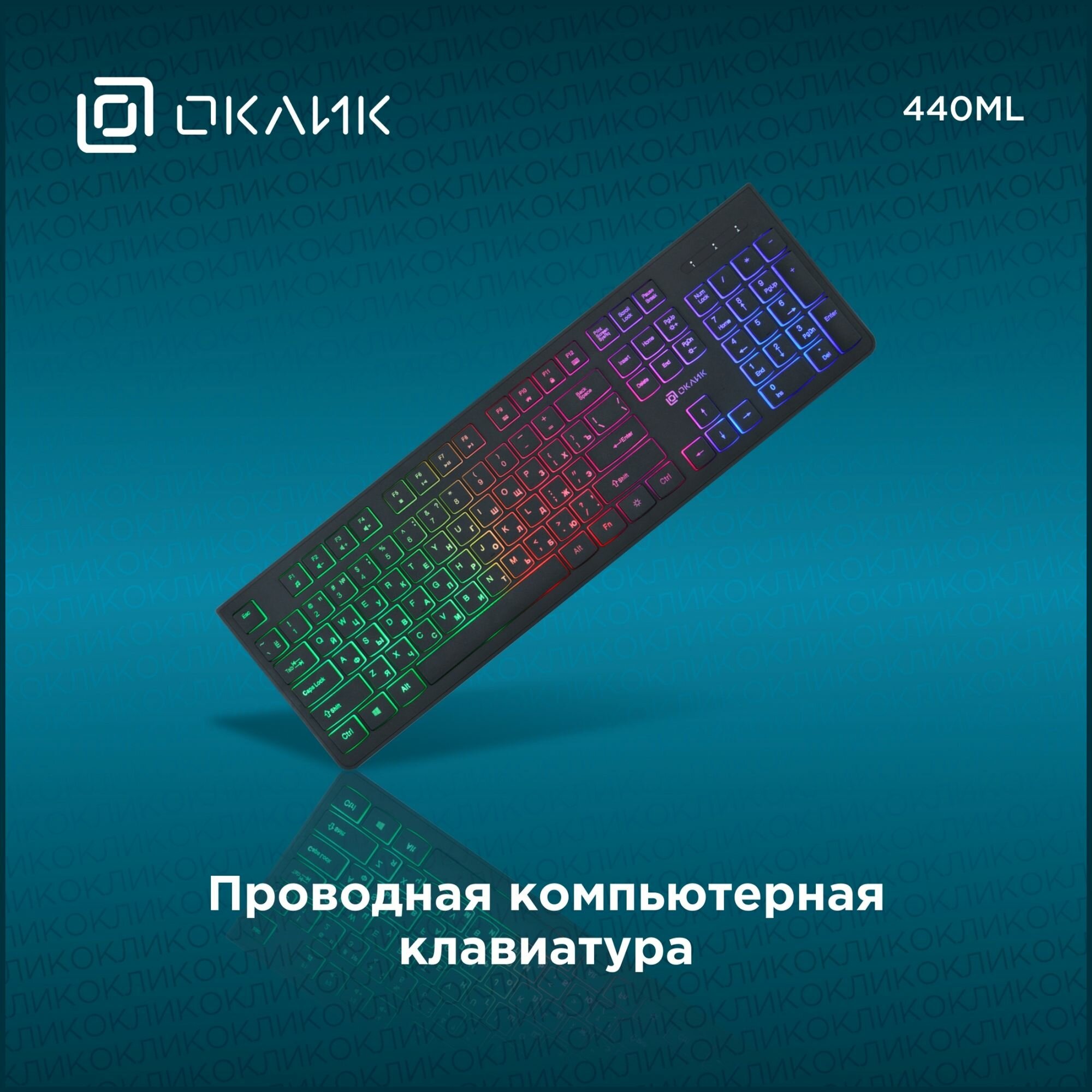 Клавиатура Oklick 440ML Black (usb) 104КЛ, подсветка клавиш (1196537) .