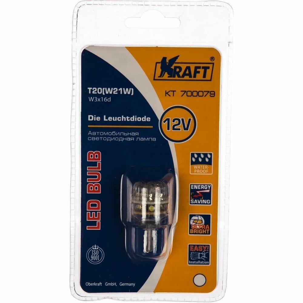 KRAFT KT700079 Светодиодная лампа T20 W21W (W3x16d) 12v White 9 LEDs (1 шт.Блистер)