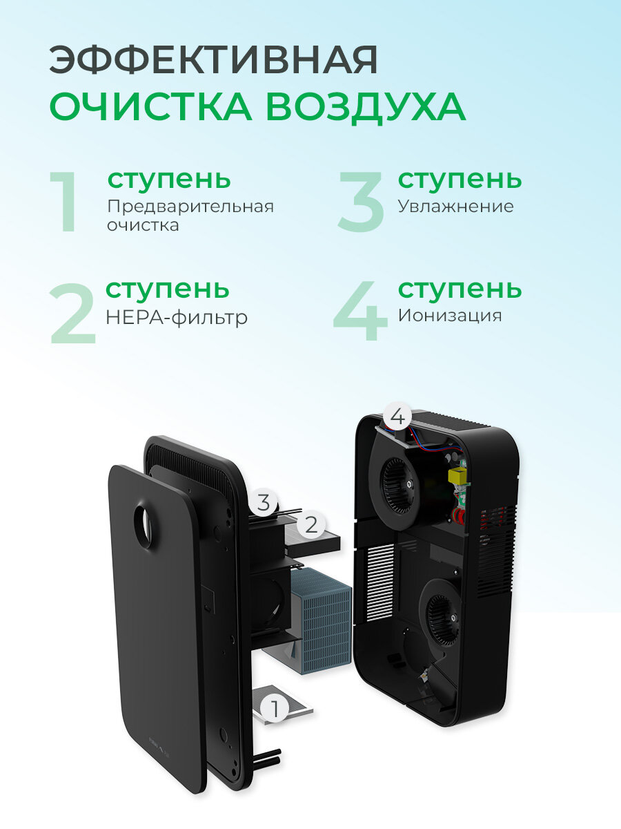 | Плюсы: | Очищает воздуха, дает приток свежего воздуха. Есть вытяжка. Есть управление через приложение |