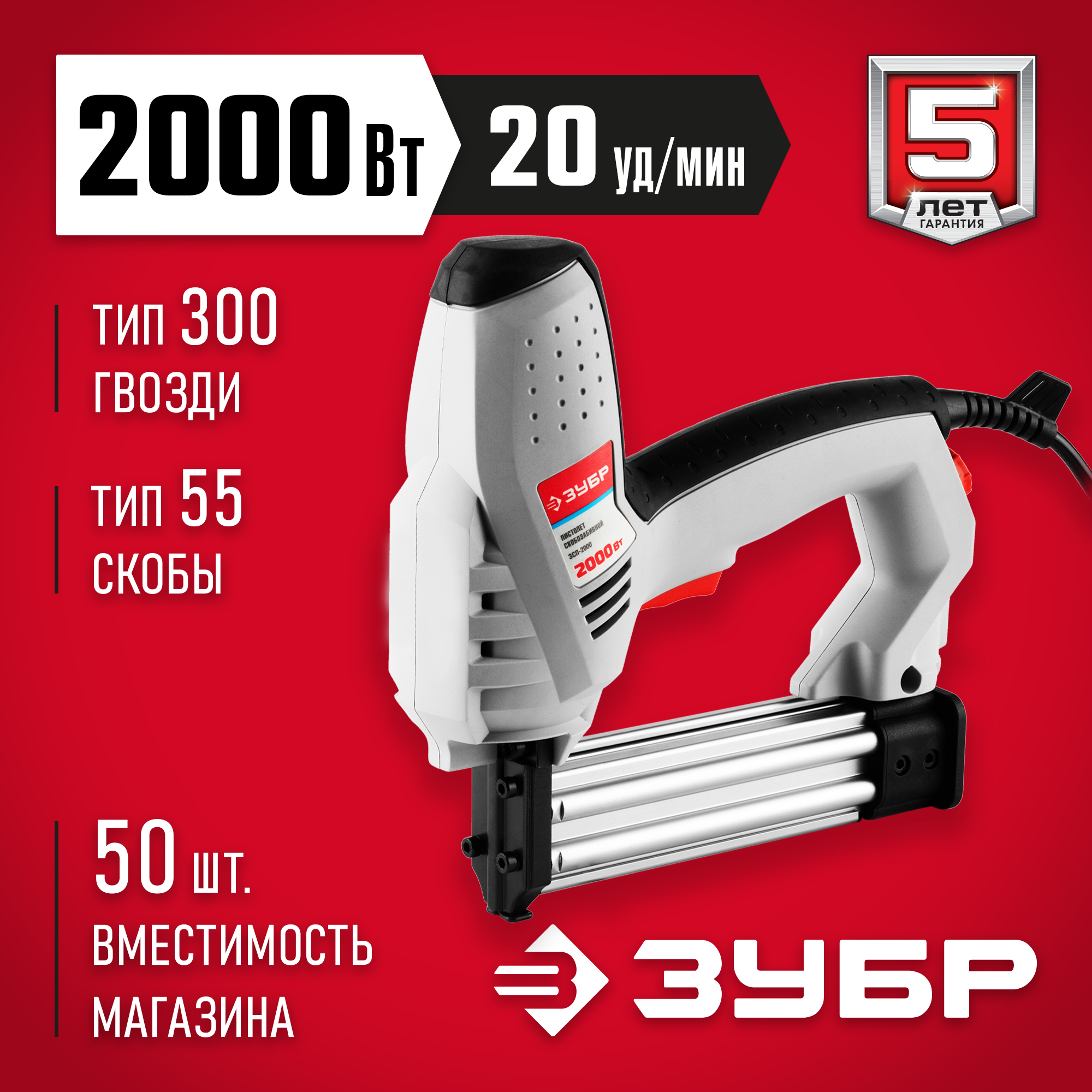 ЗУБР 15-25 мм скоба, 15-30 мм гвоздь, 2000 Вт, электрический степлер (ЗСП-2000)