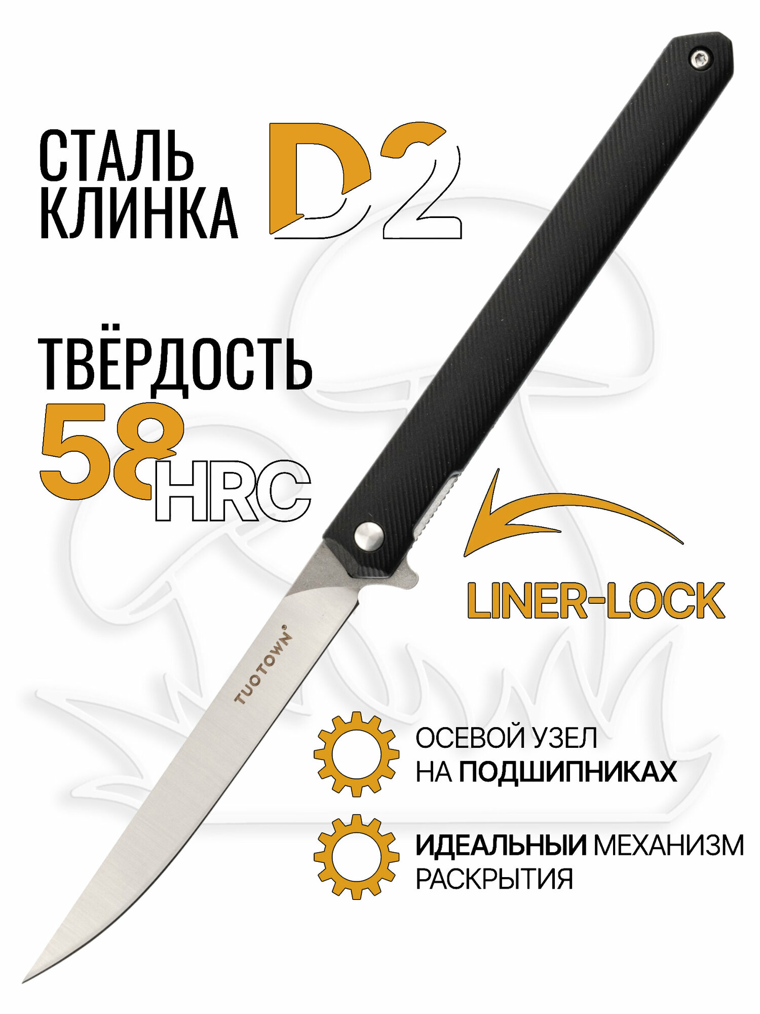 TUOTOWN BDJ-TUO-B Складной EDC нож, на каждый день (флиппер на подшипнике), клинок из D2, рук. черный пластик.
