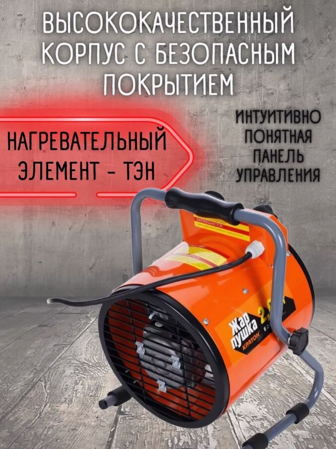 Пушка тепловая электрическая Кратон Жар-пушка Е 2-300, мощность 2 кВт, площадь отапливаемого помещения 20 кв. м.