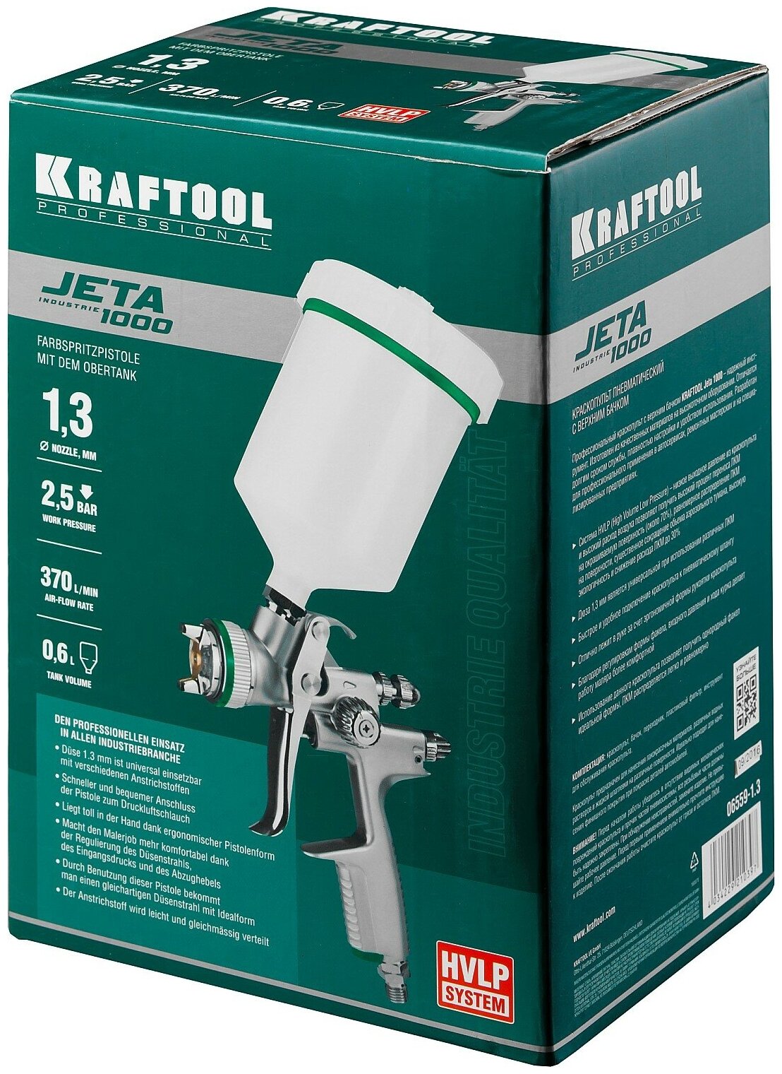 KRAFTOOL JETA 1000, HVLP 1.3 мм, Пневматический краскопульт с верхним бачком (06559-1.3)