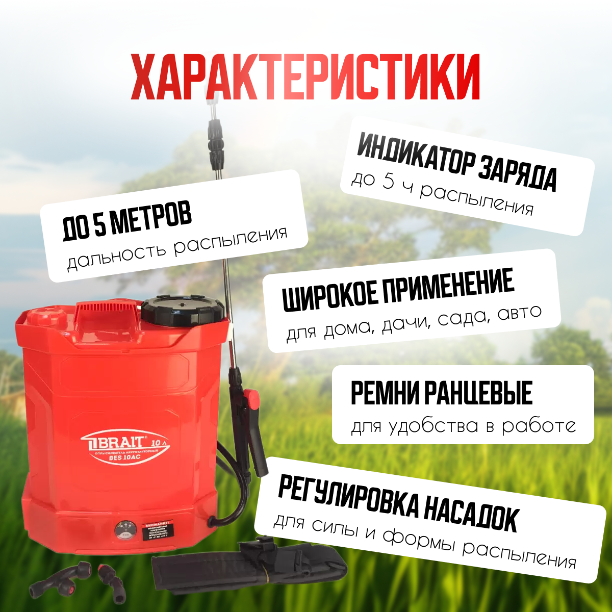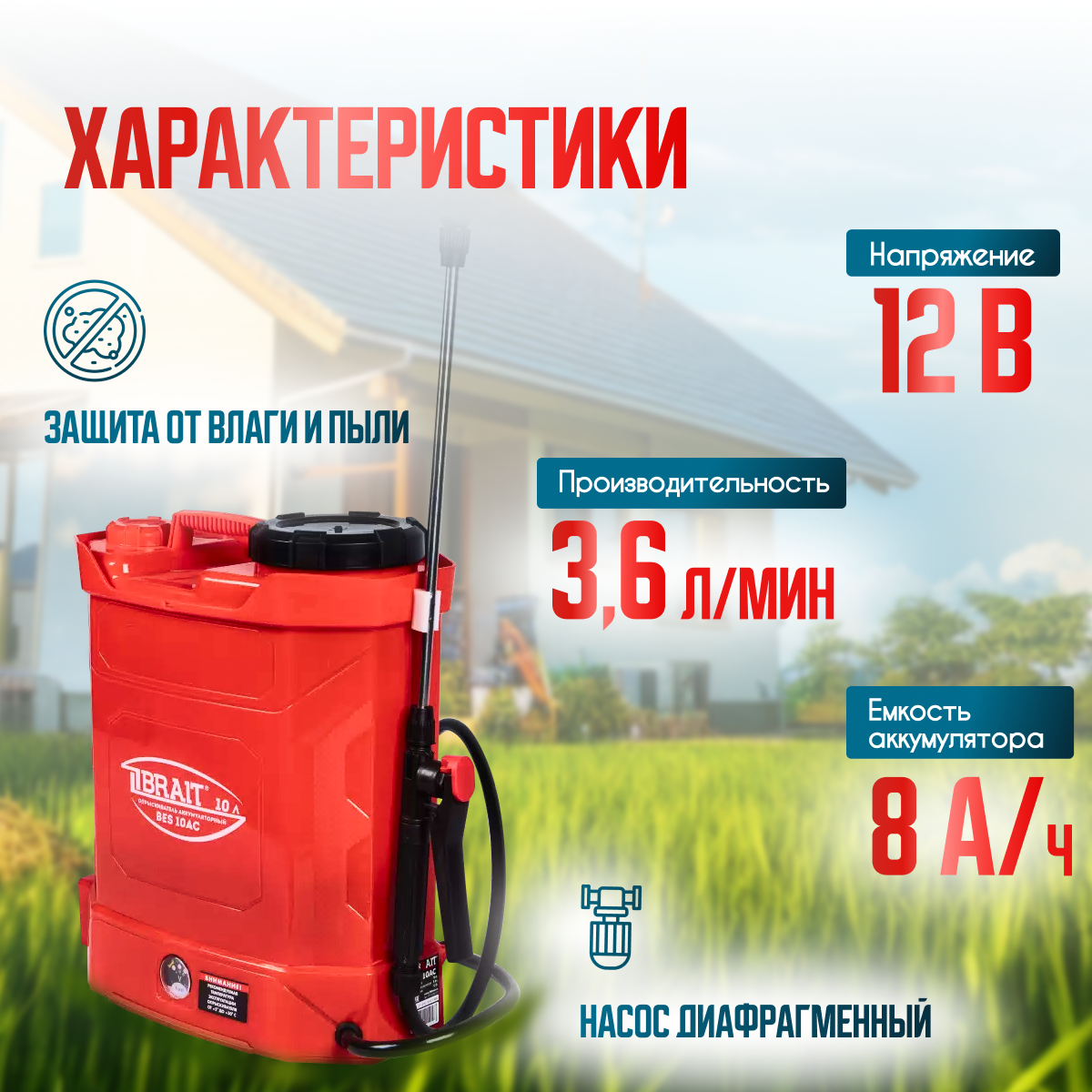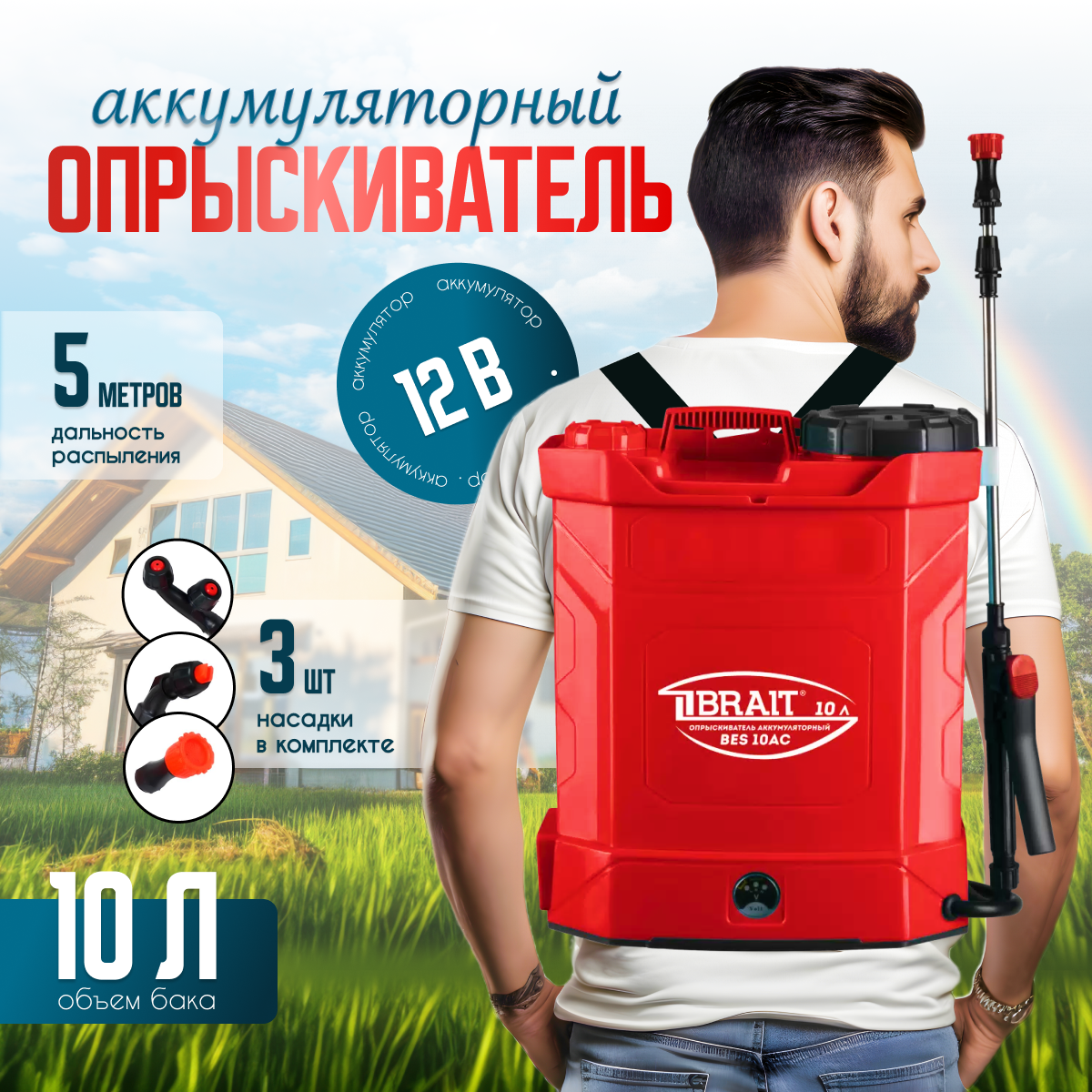 Аккумуляторный опрыскиватель BRAIT BES-10AC, 10 л