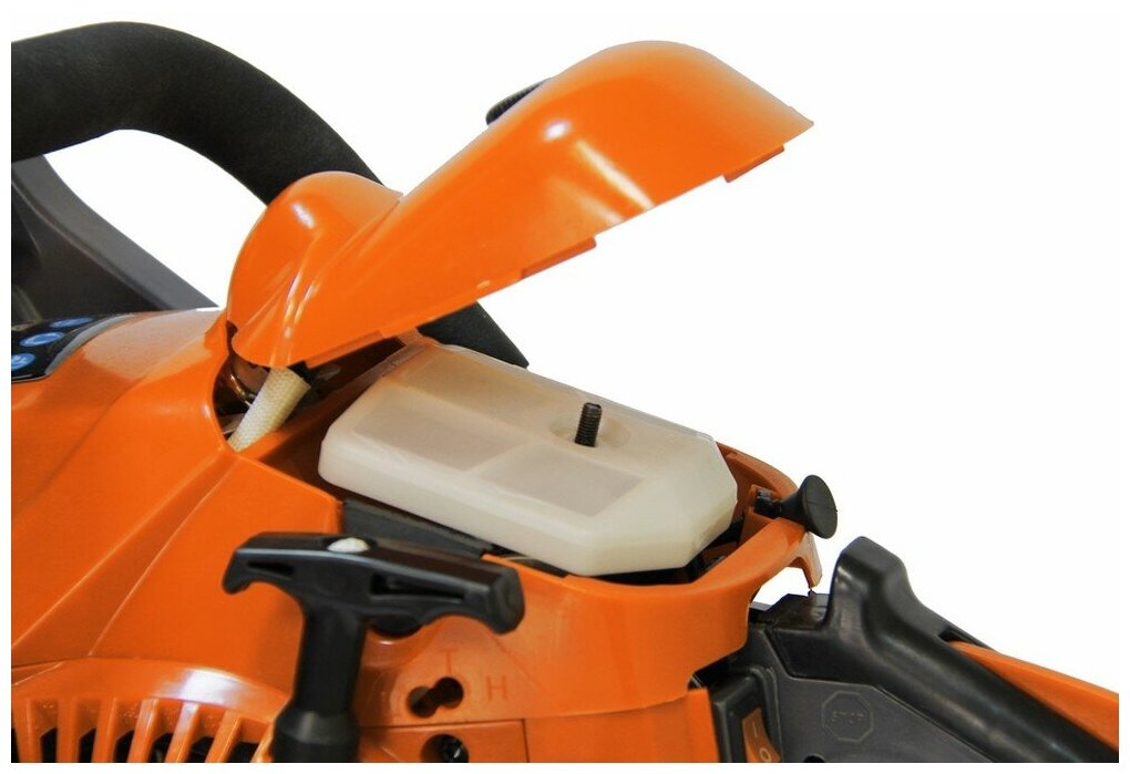 | Минусы: | выхлоп в переди, дымит прямо в лицо. кнопка включения находиться рядом с рукоятью, частенько задевая её глушиться пила. в неудобном месте находиться винт подтяжки цепи. |