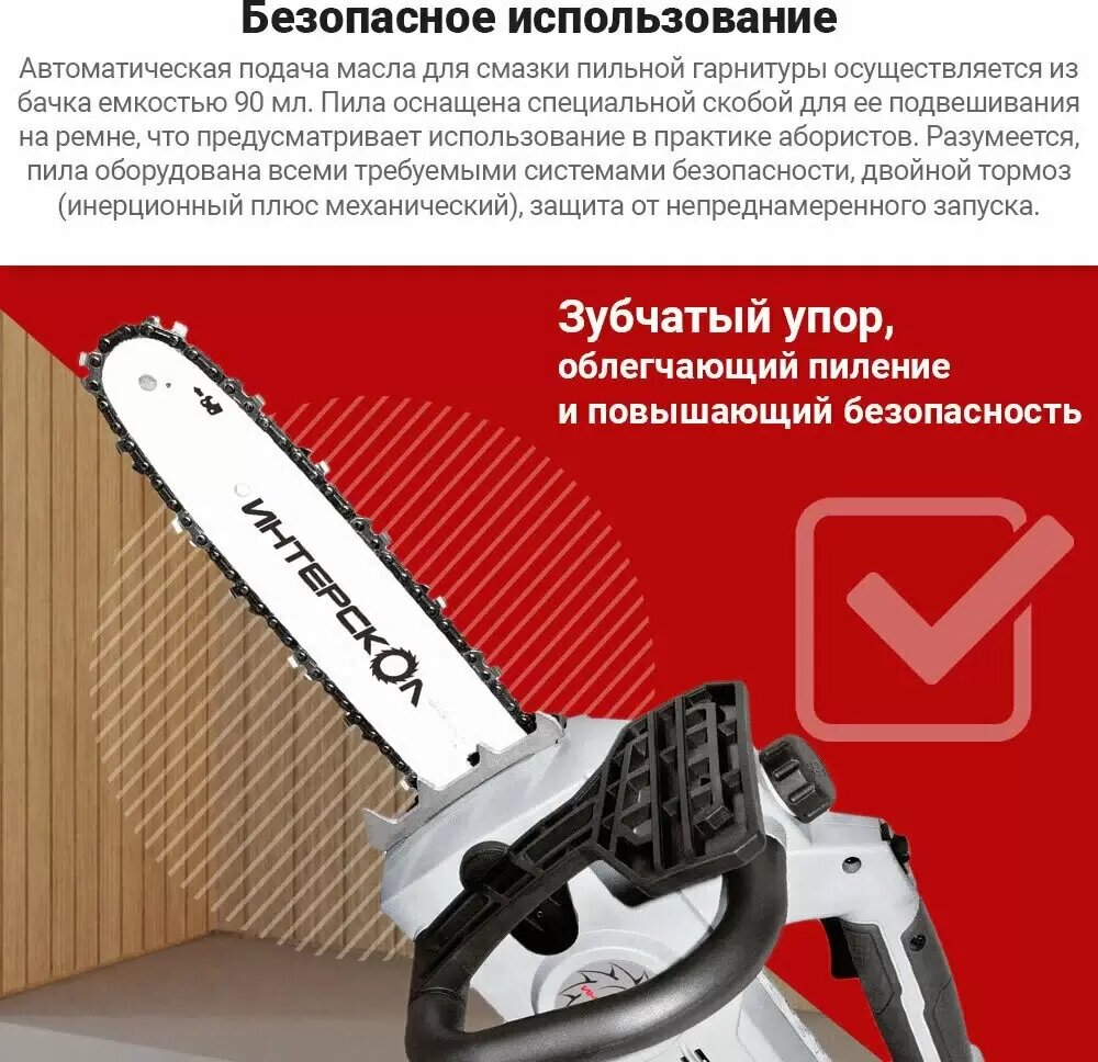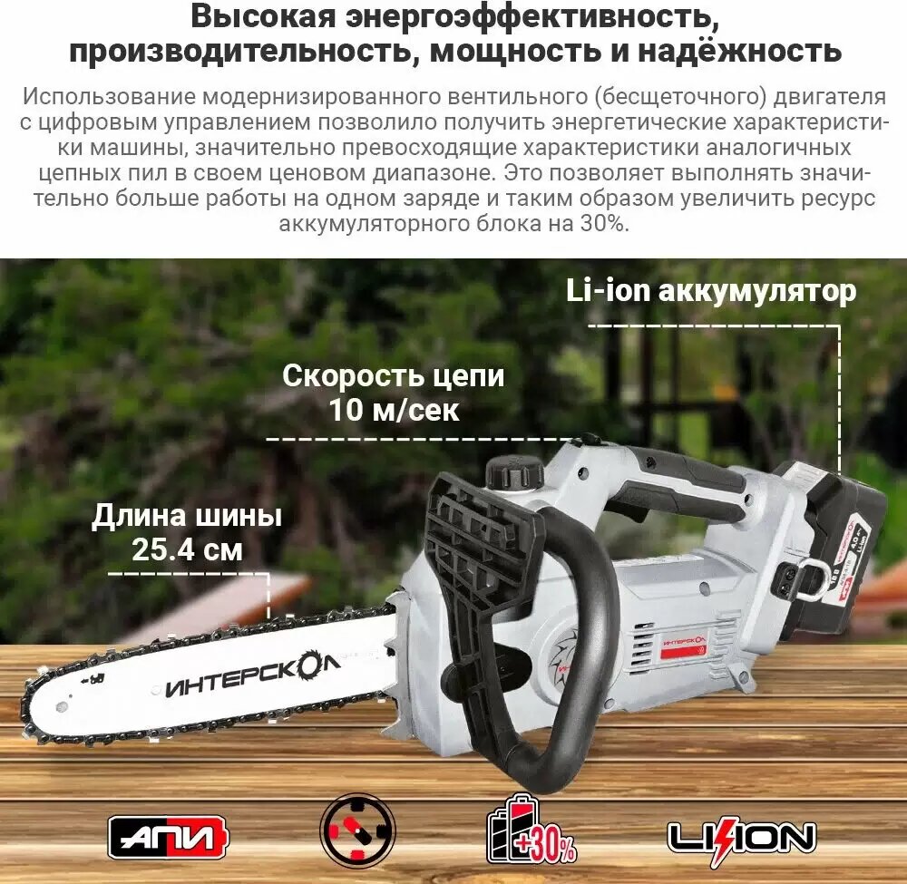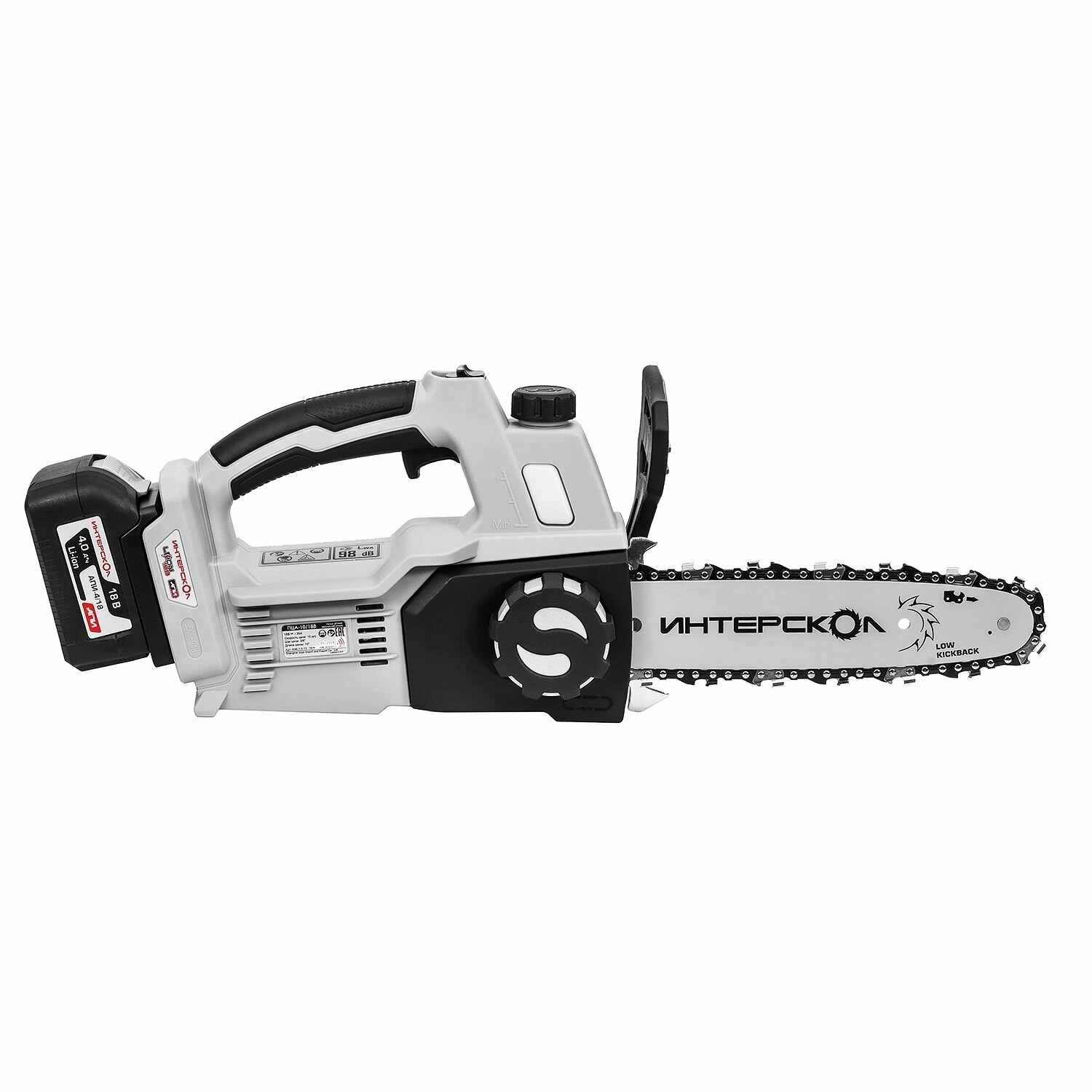 Бесщеточная аккумуляторная цепная пила ИНТЕРСКОЛ ПЦА-10/18В с вентильным двигателем