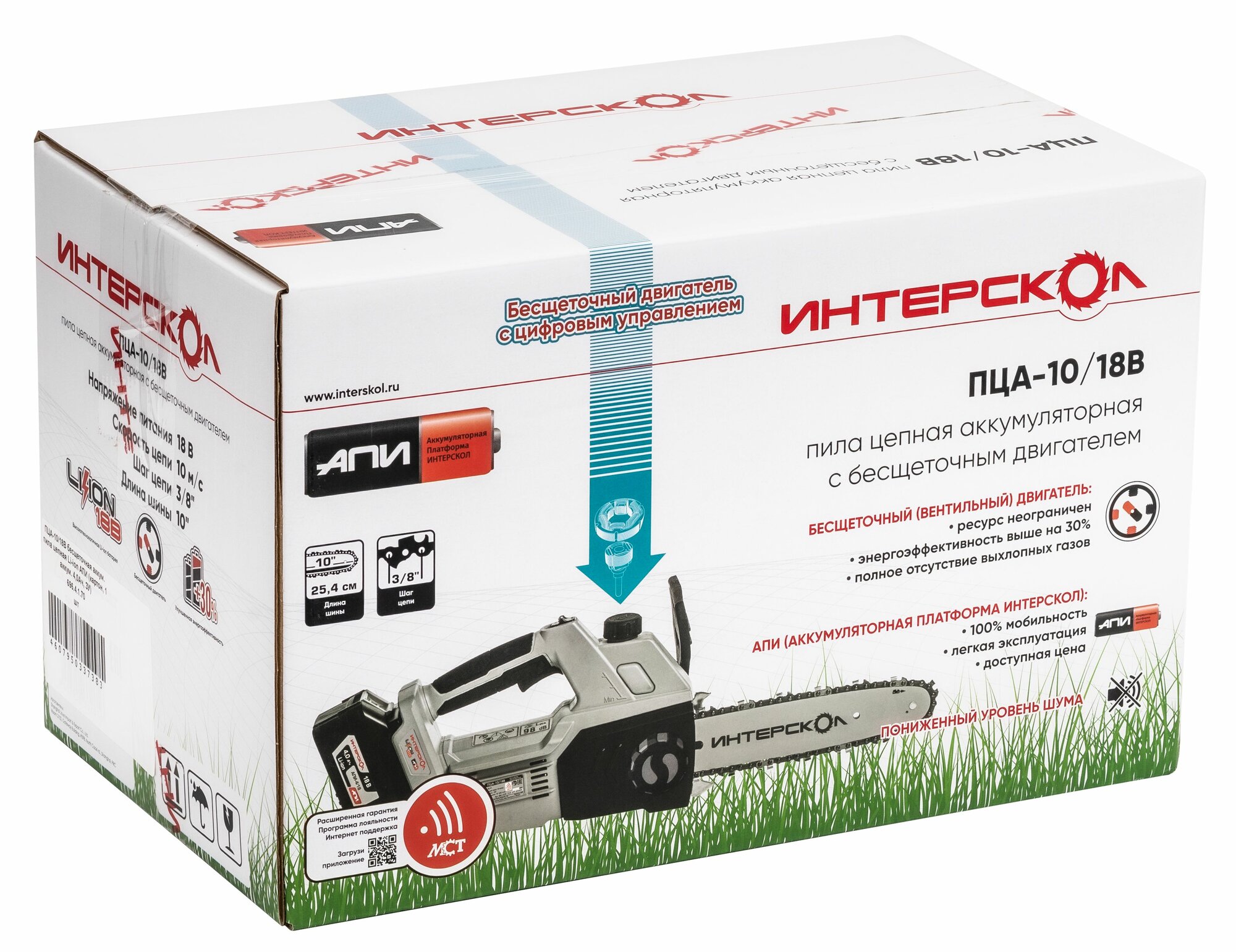 Бесщеточная аккумуляторная цепная пила Интерскол ПЦА-10/18В (картон, без аккум. и ЗУ)