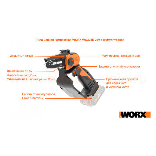 Купить WORX Пила аккумуляторная WG324E, 20В, 2Ач х1, ЗУ 2А WG324E