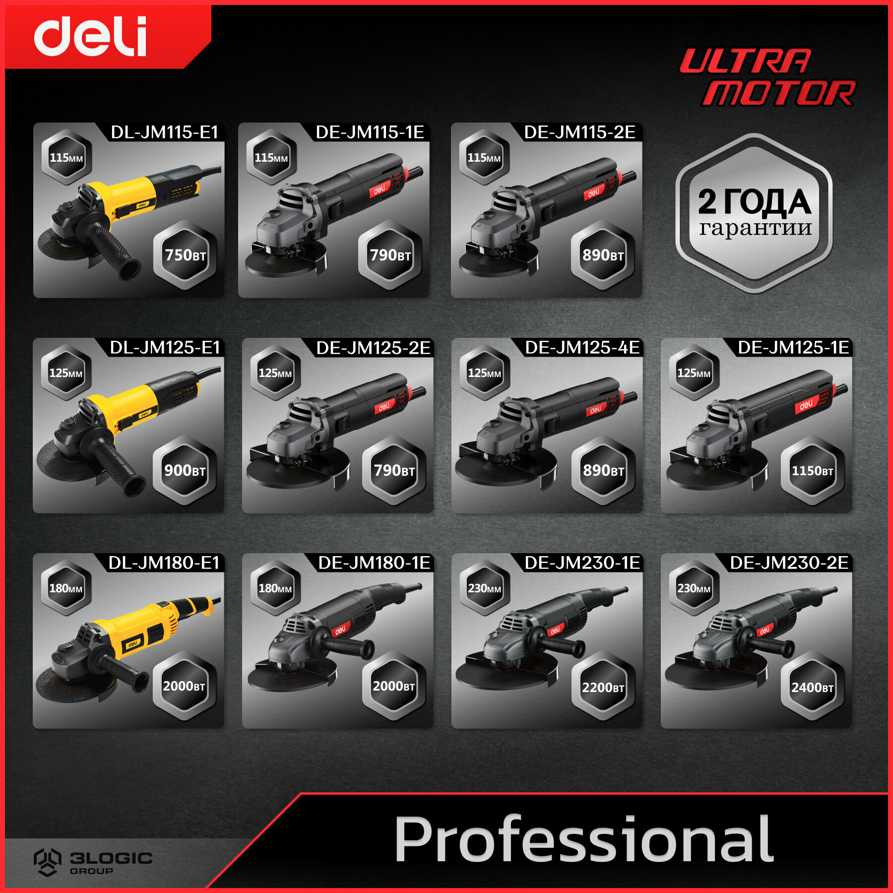 Профессиональная угловая шлифмашина (болгарка) Deli DE-JM125-2E (790Вт, диск 125мм, 12000 об/мин, Ultra Motor)