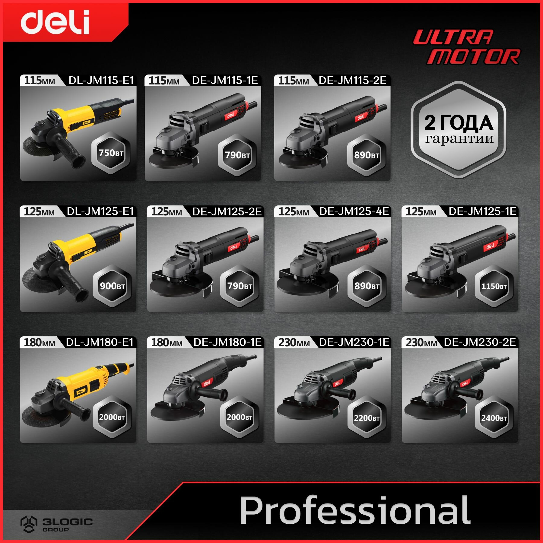 Профессиональная угловая шлифмашина (болгарка) Deli DE-JM125-2E (790Вт, диск 125мм, 12000 об/мин, Ultra Motor)