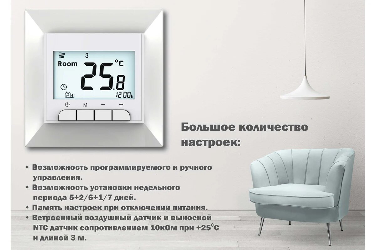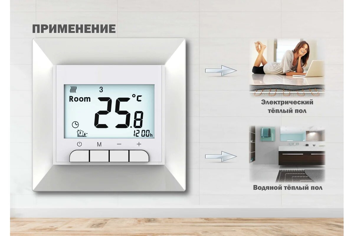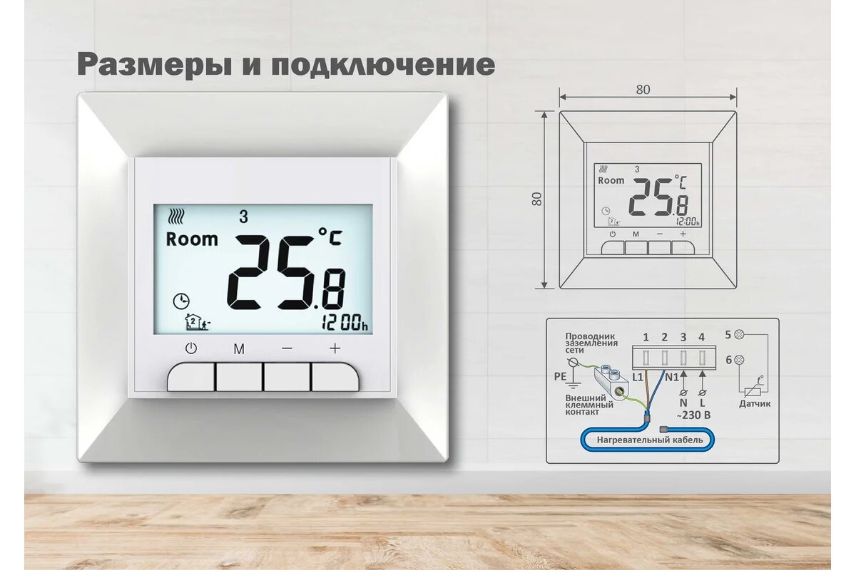 | Минусы: | При выборе режима работы потдатчику пола, на регуляторе все равно отображается температура Room?♂️?♂️?♂️ |