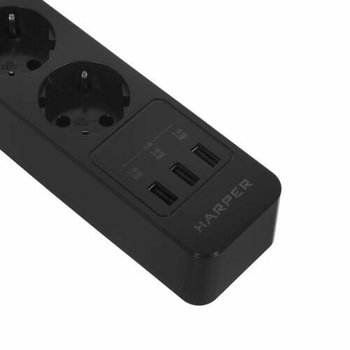 Сетевой фильтр 3.0м черный Harper UCH-560 Black 3xUSB порта, 5 розеток, 4000W 16A