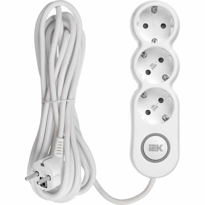 Удлинитель IEK WYP53-16-05-D15-ZK, 5 розеток, 1.5 м, с/з, 16А / 3500 Вт белый