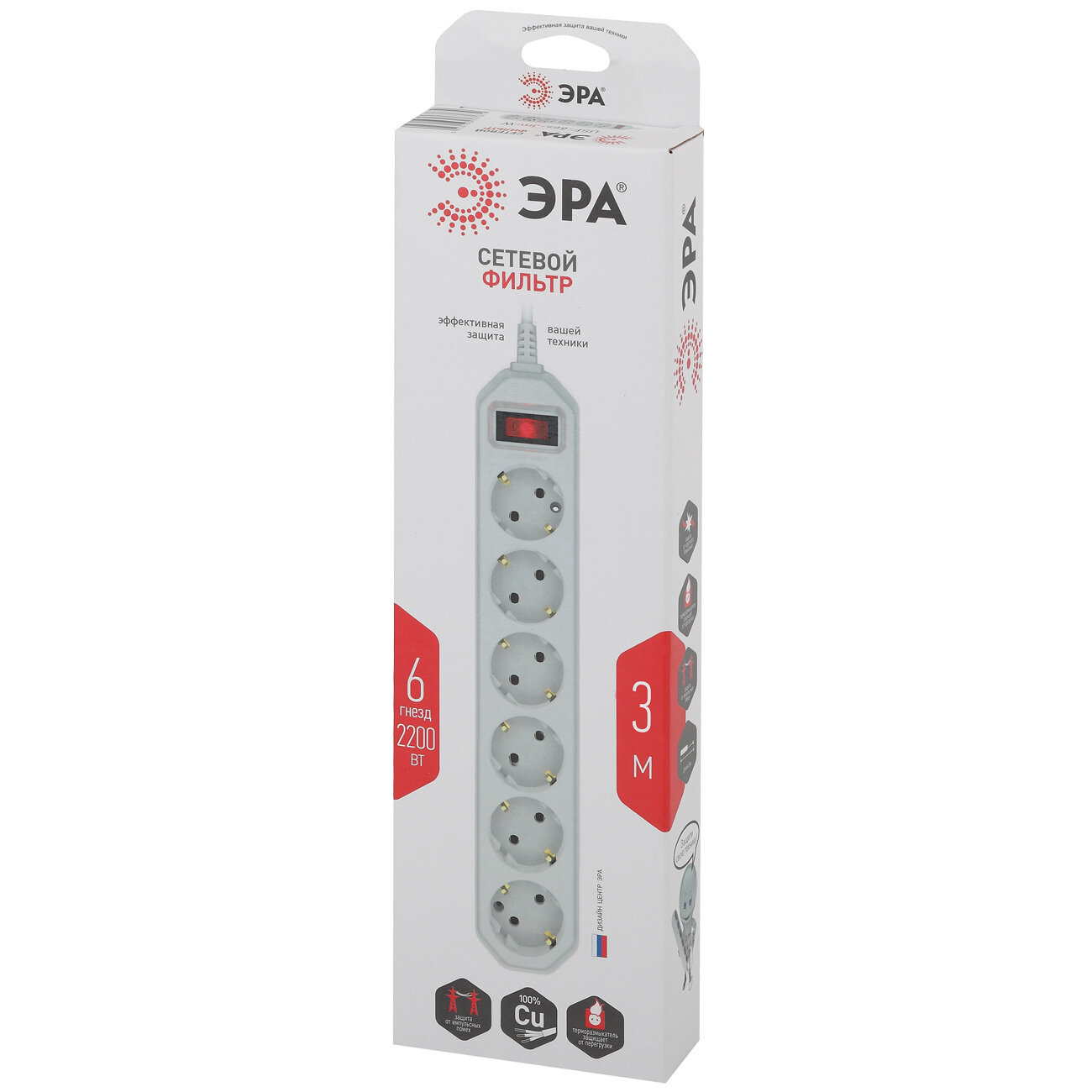 Купить Сетевой фильтр Эра Белый, 3 м, 6 розеток
