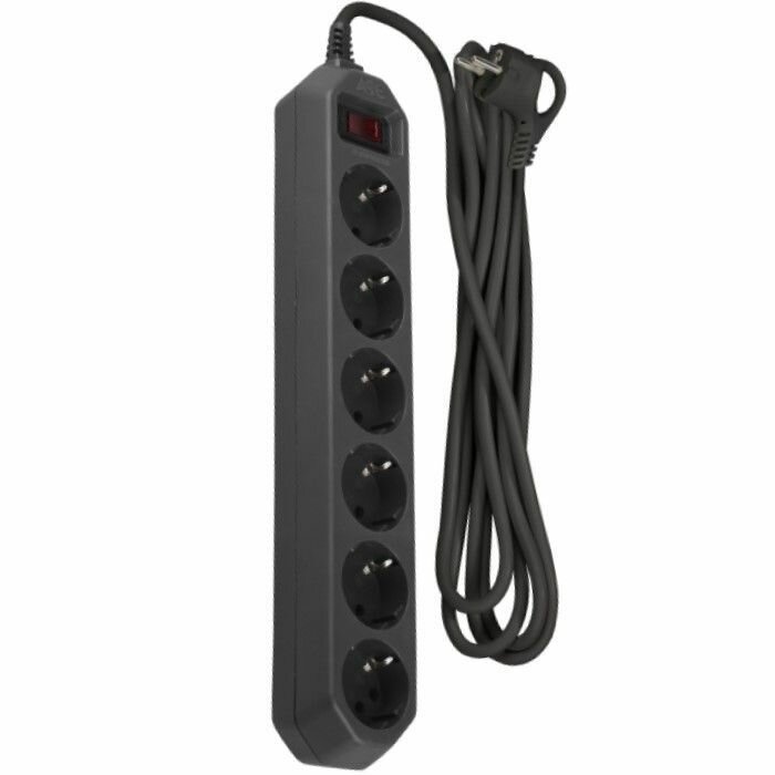 Сетевой фильтр Эра Черный, 1,5 м, 6 розеток