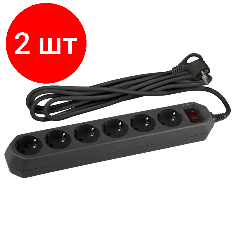 Купить Комплект 2 штук, Сетевой фильтр ЭРА 3м 6 розеток, черный (USF-6es-3m-B-BOX)