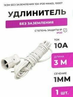 Удлинитель-шнур 1х3м без заземл. 10А IP20 Makel 10007