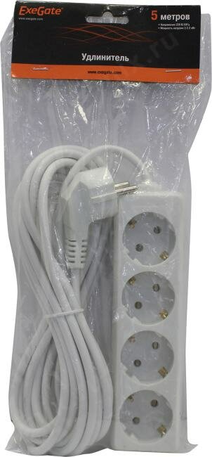 Удлинитель ExeGate ECE-4-5W (4 евророзетки с заземлением, 5м, белый)