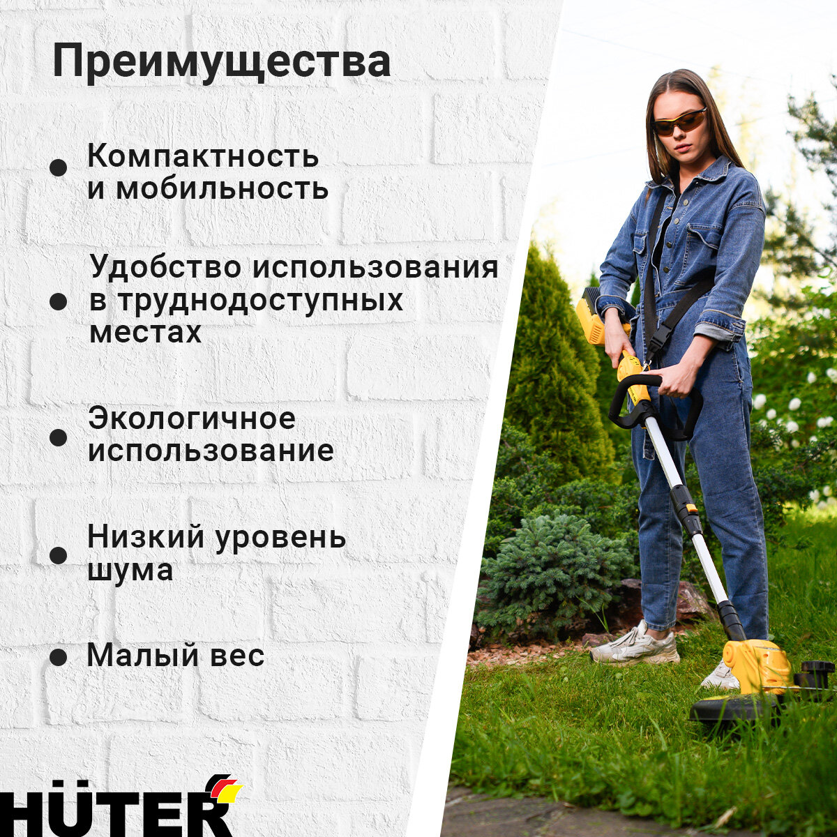 Купить Триммер электрический Huter GET-20M-Li, аккумуляторный, 20В, 2Ач [70/1/66]