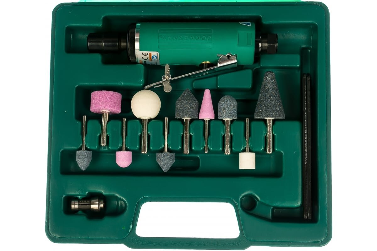 Купить Пневмошлифмашина 48525 Прямая, 25000 Об/Мин, Патрон 3/6 Мм, L-152 Мм, 113 Л/Мин, С Насадками - 15 Предметов Jonnesway арт. JA...