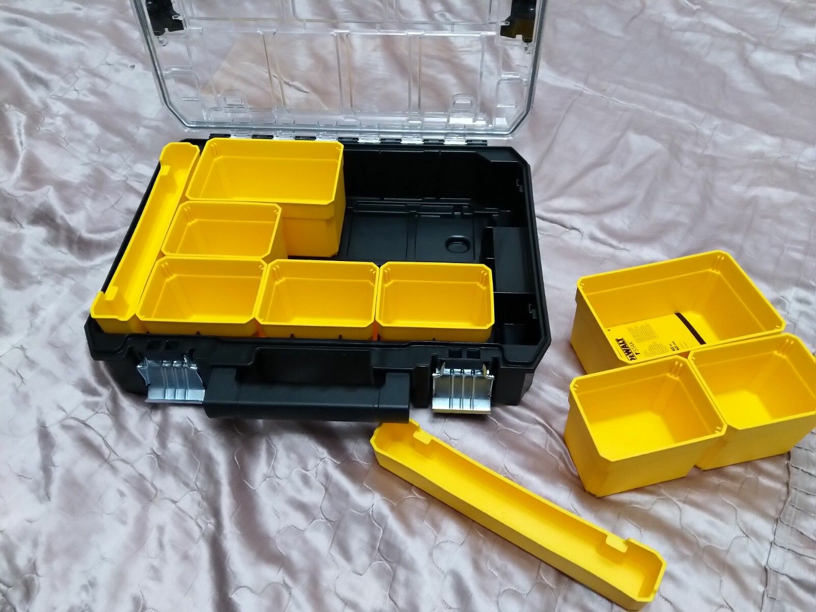 | Отзыв: | Очень доволен покупкой. Хороший органайзер DEWALT TSTAK для крепежа.очень удобно что ящик совместим с кейсами из под инструмента. Советую. Удобно |