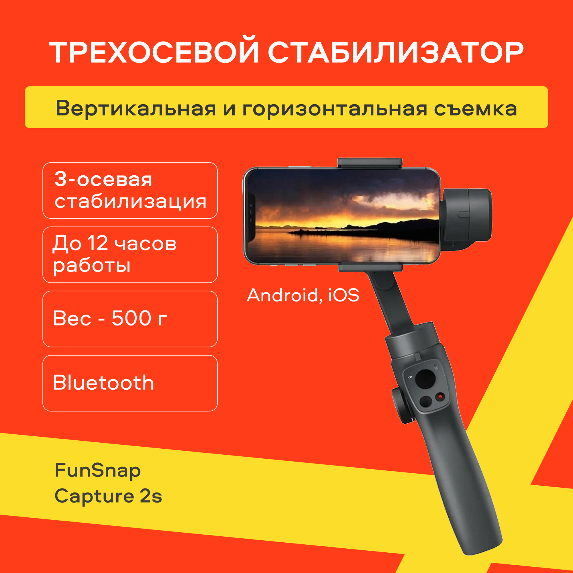 Трехосевой стабилизатор FunSnap, модель Capture 2s, для телефона, чёрный интересное: