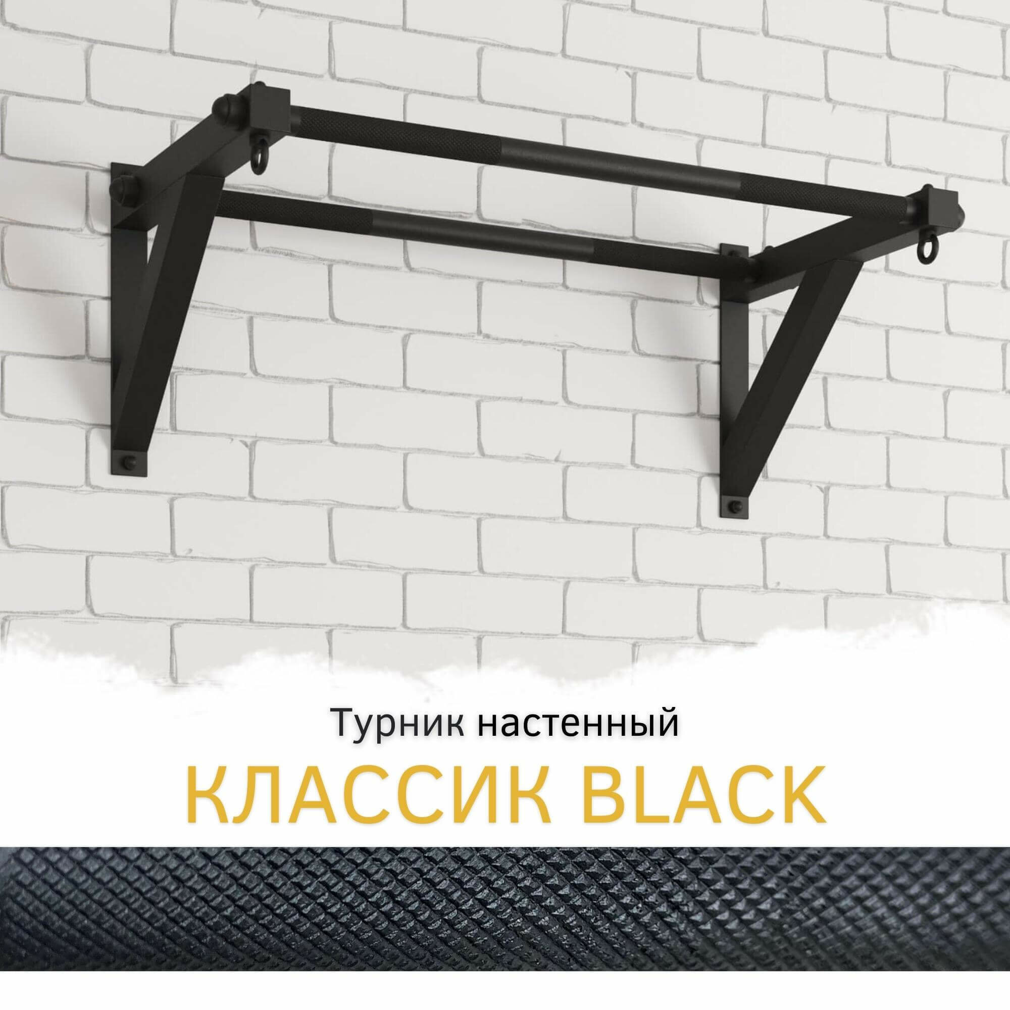Турник настенный 2 хвата классик "BLACK" со стальным рифлением хватов интересное:
