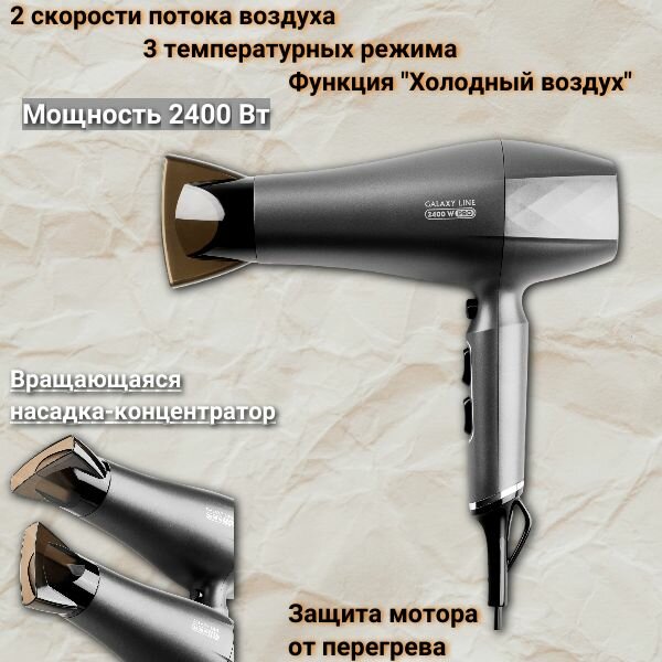 Купить Фен GALAXY LINE GL4368, мощность 2400Вт, антрацитовый цвет