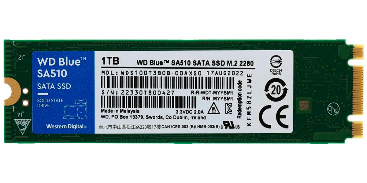 SSD WD Blue SA510 Wds100t3b0b 1ТБ, M.2 2280, SATA3